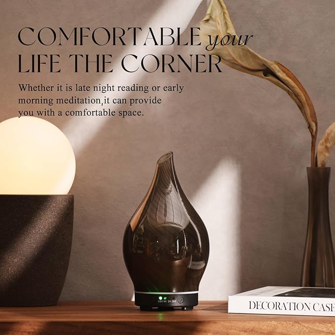 - UNIQUE ART DECOR - 150ml glass essential oil diffuser with star-shaped glass cover & wood grain base. Adds artistic harmony to your living space, perfect for bedrooms, living rooms, kids' rooms, studies, offices, & yoga studios. Enhances ambience