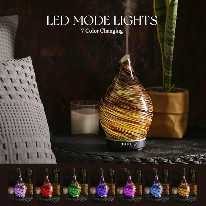 - UNIQUE ART DECOR - 150ml glass essential oil diffuser with star-shaped glass cover & wood grain base. Adds artistic harmony to your living space, perfect for bedrooms, living rooms, kids' rooms, studies, offices, & yoga studios. Enhances ambience