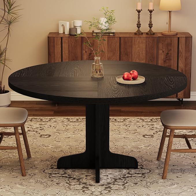 IDEALHOUSE Round Dining Table for 4, 47 Inches Dining Room Table with Wooden Base, Circle Kitchen Dinner Table for Dining Room, Kitchen, Living Room (Table Only), Black
