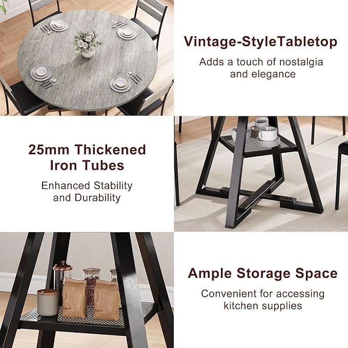 - EXTRA LARGE STORAGE SPACE: A Thoughtfully designed storage shelf is for organizing tableware and kitchen essentials, keeping them easily within reach. It helps maintain a clean, clutter tabletop while providing convenient access to everything you need. Round dining table maximizes the usable area of the dining table, a 47-inch round dining table for 4, ideal for family meals and gatherings.