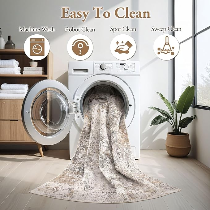 - Versatile Sizes for Any Room: Available in multiple sizes—5x7 ft, 6x9 ft, 8x10 ft, 9x12 ft, and 10x14 ft—this washable rugs fits perfectly in your living room, bedroom, dining room, laundry room, entryway, kids' room, playroom, kitchen and office. Elevate your home with a blend of practicality and timeless style