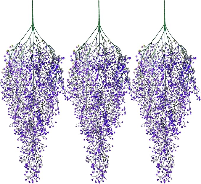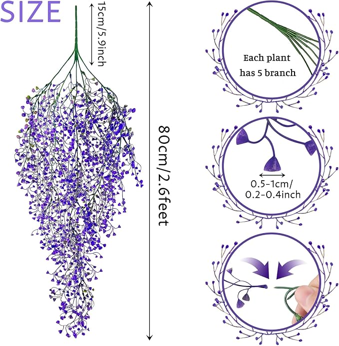 - Package includes: 3 Pack Fake Hanging Plants purple Ivy, each with 5 bifurcations, the total length of the fake hanging plant is 80cm/ 2.6 Feet.
