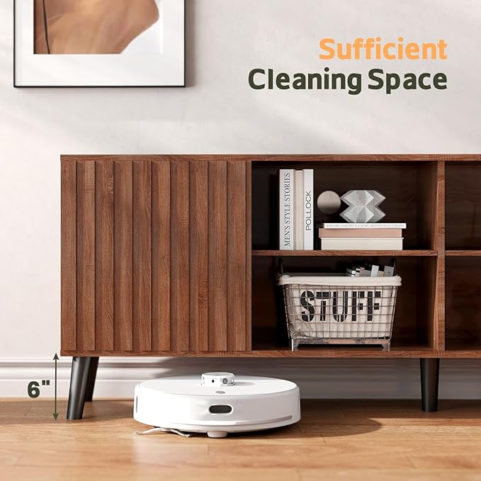 - Effortless Floor Cleaning with Raised Legs: Thoughtfully designed 6-inch legs elevate the 80 inch tv stand just enough for robot vacuums to pass underneath, so keeping your home tidy is as easy as pressing a button.