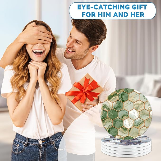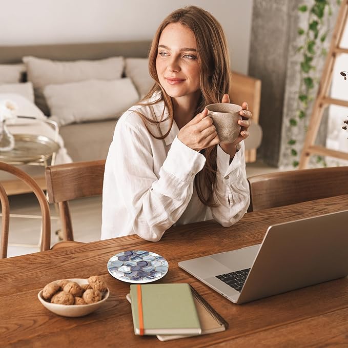 Drinks Coasters Set of 4, Marble Pattern Round 4" Cup Coasters, Absorbent Ceramic Stone Coasters with Cork Base, Cute Coasters for Table Home Décor, Ideal Gifts for Women Men