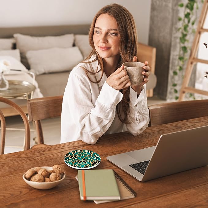 - High Quality: Cenlaren ceramic drink coasters are made with absorbent ceramic surface and soft cork bottom.
