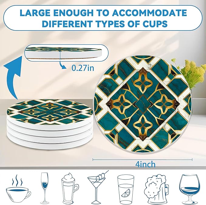 - Suitable for Drinkware: With a diameter of 4 inches, our coasters can accommodate cocktail glasses, beer mugs, wine glasses, coffee cups, plastic cups, silicone cups, and small dishes, making them versatile for all types of drinkware. They complement any glassware beautifully.