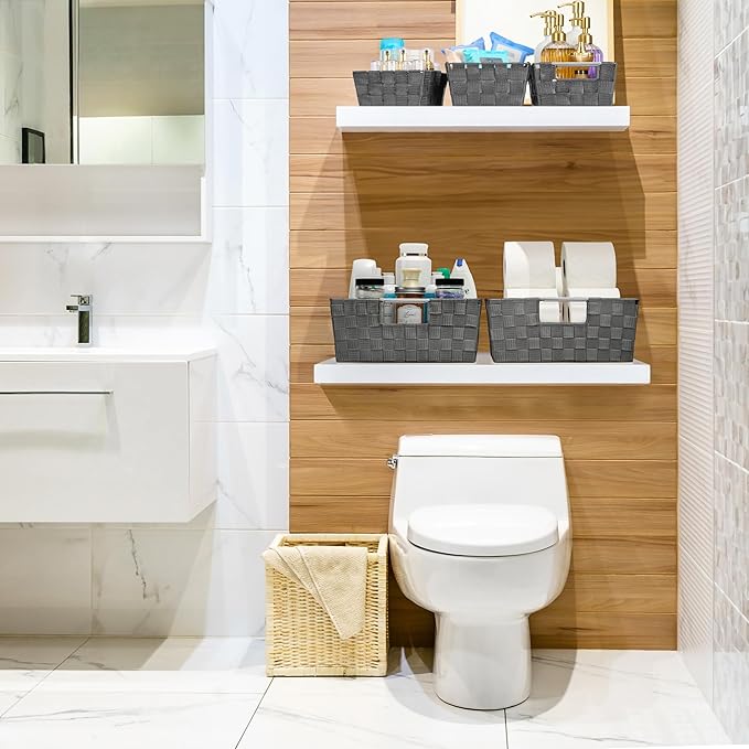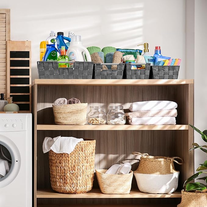 - Customizable Storage for Any Room Use the baskets as linen closet organizers, storage bins for shelves, or for decluttering countertops. Multiple sizes make them ideal for towels, toiletries, pantry items, and office supplies.