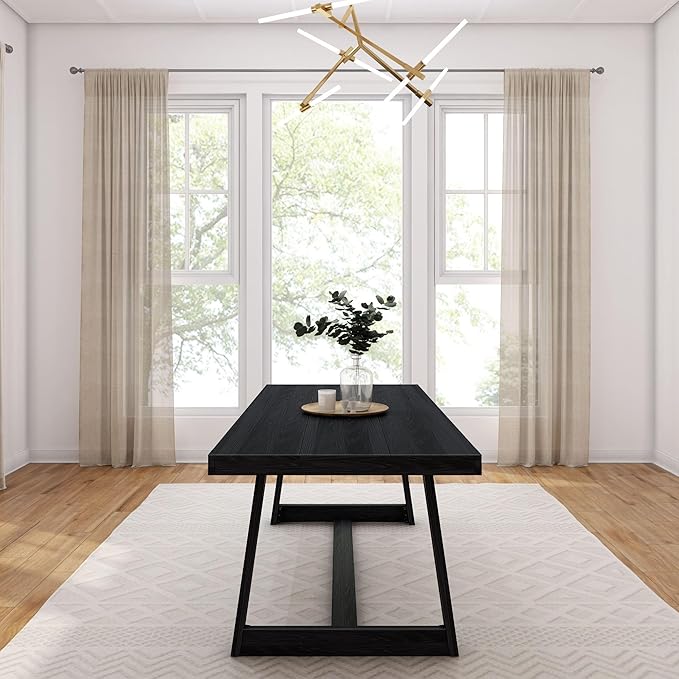 Plank+Beam 84 Inch Farmhouse Dining Table, Solid Wood Rustic Kitchen Table, Large Wooden Rectangular Dinner Table for Dining Room, Home Office, Living Room Furniture, Easy Assembly, Black Wirebrush