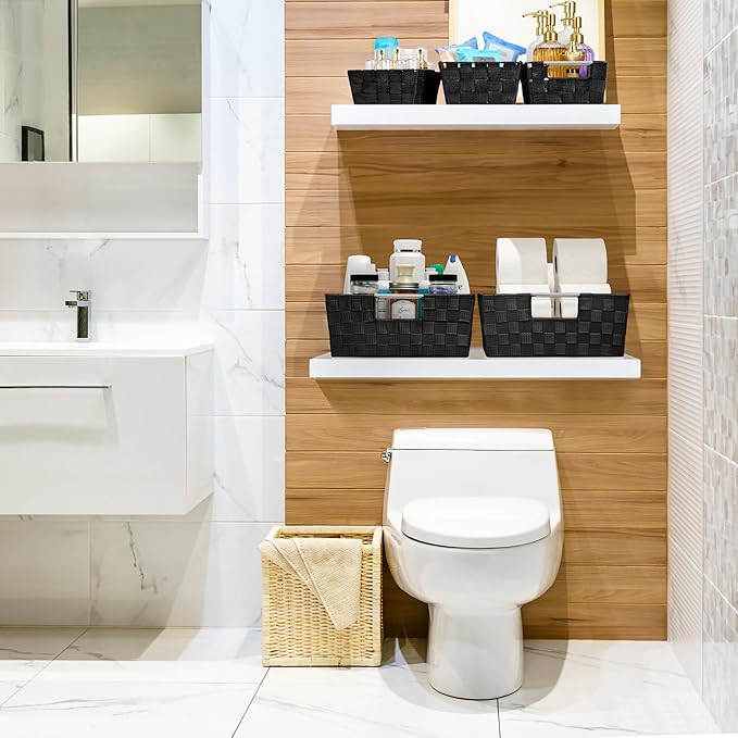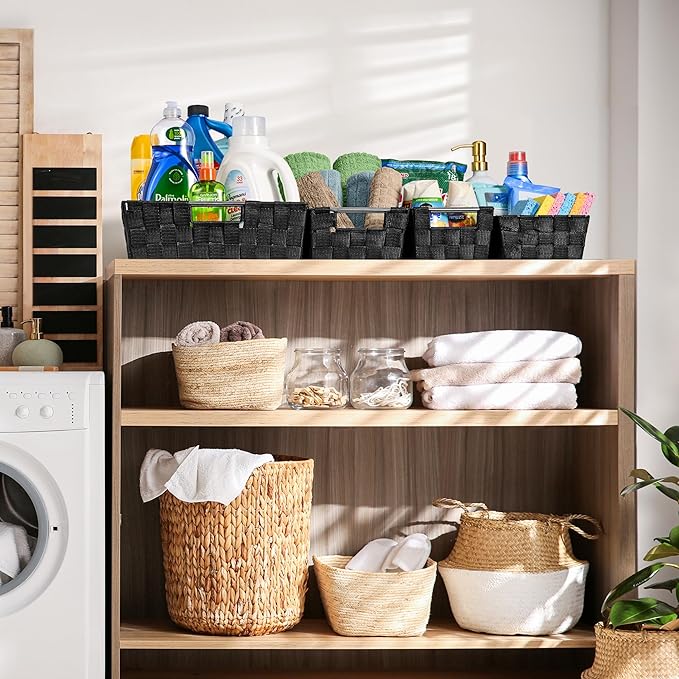 - Customizable Storage for Any Room Use the baskets as linen closet organizers, storage bins for shelves, or for decluttering countertops. Multiple sizes make them ideal for towels, toiletries, pantry items, and office supplies.