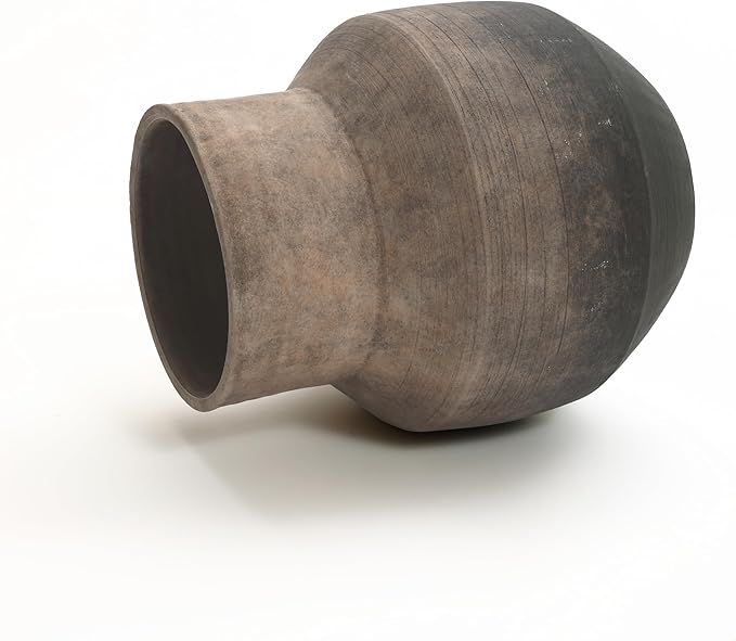 LuxenHome Round Ceramic Flower Vase, 13 Inch Brown Terracotta Vases, Vintage Large Pottery for Living Room Decor Entry Way Table Home Decor, Rustic Pottery