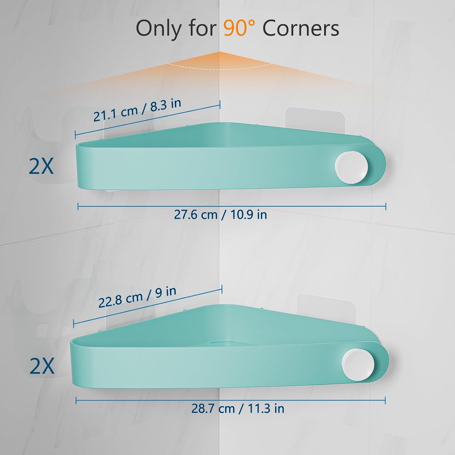 Sotfamily Shower Caddy Corner, 4 Pack Adhesive Corner Shower Shelves for Bathroom Organizers and Storage, Rust Free Plastic Rack for Bathroom Accessories & Decor, Turquoise
