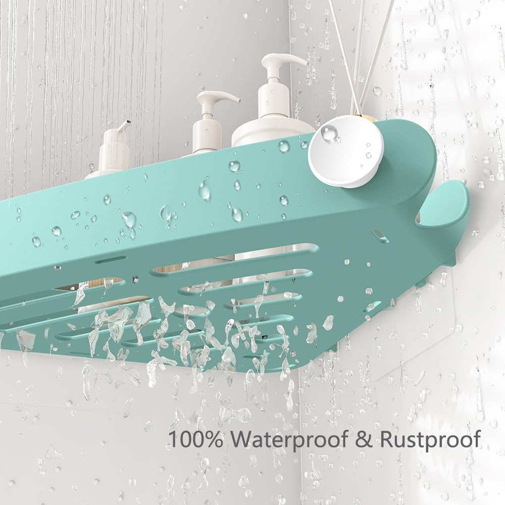 Sotfamily Shower Caddy Corner, 2 Pack Adhesive Corner Shower Shelves for Bathroom Organizers and Storage, Rust Free Plastic Rack for Bathroom Accessories & Decor, Turquoise