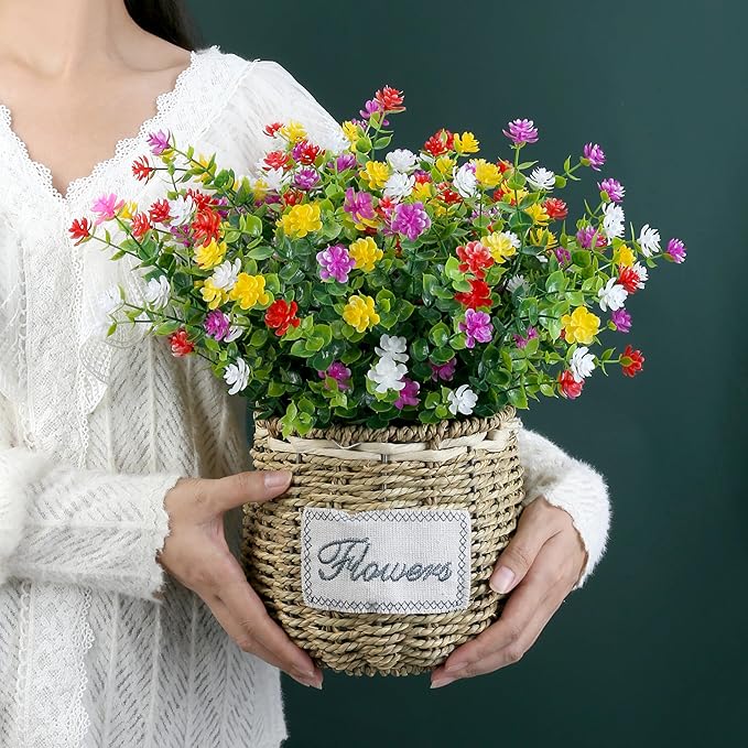 - Realistic Outdoor Artificial Flowers: You can use outdoor artificial plants for home decor, wedding, hotel, office or other indoor and outdoor decoration or DIY bouquet.Plastic plants are UV resistant and never fade.There can be placed outdoors, on porche, garden, balcony, farmhouse, veranda, back deck.