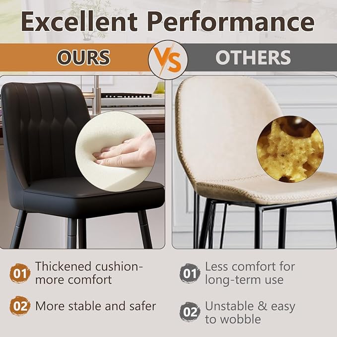 - Anti-Slip Protection - Provide More Safety for Your Family: Say goodbye to unstable seats! The concave seat of this upholstered counter height bar stools prevents users from tipping over, providing more safety for your family.This black faux leather bar stools with swivel leveling foot pads not only helps to adjust the legs to keep balance on uneven ground, but also protects the floor from scratches