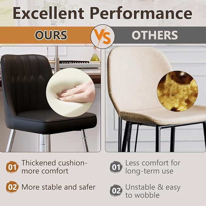 - Sturdy X-Shaped Reinforcement Support: This bar stools set of 2 features an X-shaped reinforcement design at the bottom of the seat cushion, effectively dispersing pressure. It can withstand up to 500 pounds. The wide cushion and fine stitching enhance the durability of the cushion, and the sturdy metal frame avoids bending and rusting after long-term use. This counter stools set of 2 will stand the test of time. Make your investment more valuable