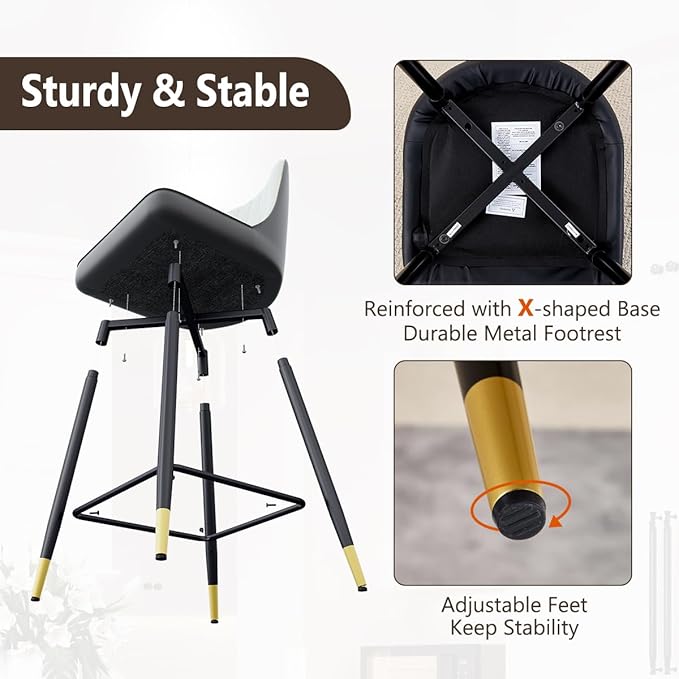 - Anti-Slip Protection - Provide More Safety for Your Family: Say goodbye to unstable seats! The concave seat of this upholstered counter height bar stools prevents users from tipping over, providing more safety for your family.This white faux leather bar stools with swivel leveling foot pads not only helps to adjust the legs to keep balance on uneven ground, but also protects the floor from scratches