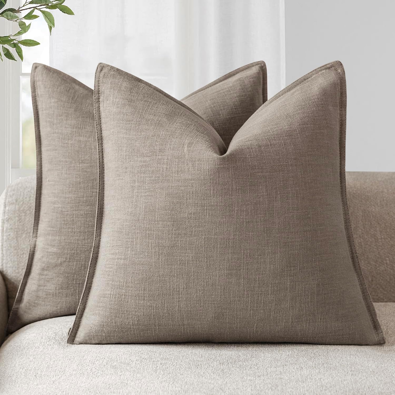 Foindtower Set of 2, Decorative Linen Soild Throw Pillow Covers Soft Accent Euro Cushion Case Farmhouse Neutral Pillowcase for Chair Couch Sofa Bedroom Living Room Home Decor 16 x 16 Inch Brown Tan