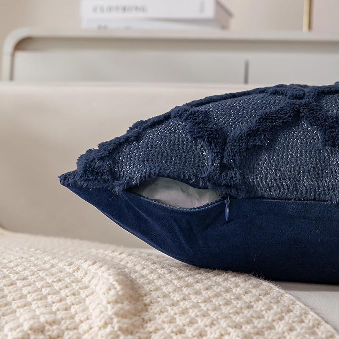 Set of 2 Soft Moroccan Throw Pillow Covers 20x20 Inch Plush Boho Decorative Pillow Cover Accent Cushion Case for Couch Sofa Bed, Navy Blue