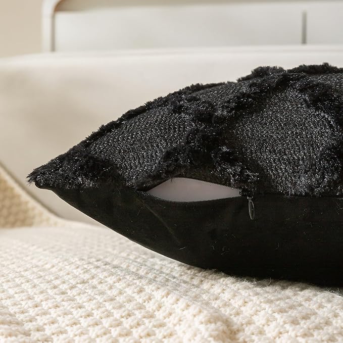 Set of 2 Soft Moroccan Throw Pillow Covers 24x24 Inch Plush Boho Decorative Pillow Cover Accent Cushion Case for Couch Sofa Bed, Black