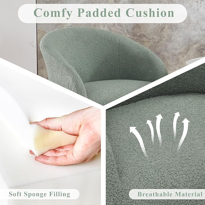 Modern Small Accent Chair Set of 2, Comfy Sherpa Makeup Vanity Chair with Metal Legs, Decorative Chair no Wheels for Living Room, Dressing Room, Bedroom, Green