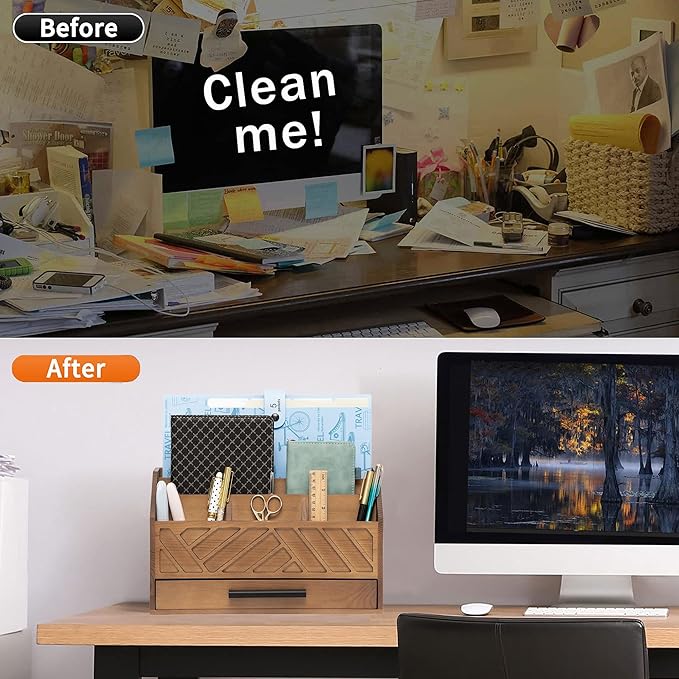 - EXQUISITE APPEARANCE: This brown desk organizer has a modern and elegant appearance design, which can help you and your family eliminate the troubles of daily clutter. It can help you create a designated workspace that is both functional and aesthetically pleasing
