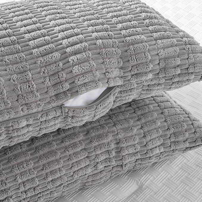 Fancy Homi 2 Packs Gray Long Lumbar Farmhouse Decorative Throw Pillow Covers 14x36 Inch for Bed Couch Bed Sofa, Rustic Boho Room Decor, Soft Striped Corduroy Rectangle Cushion Case 35x91 cm