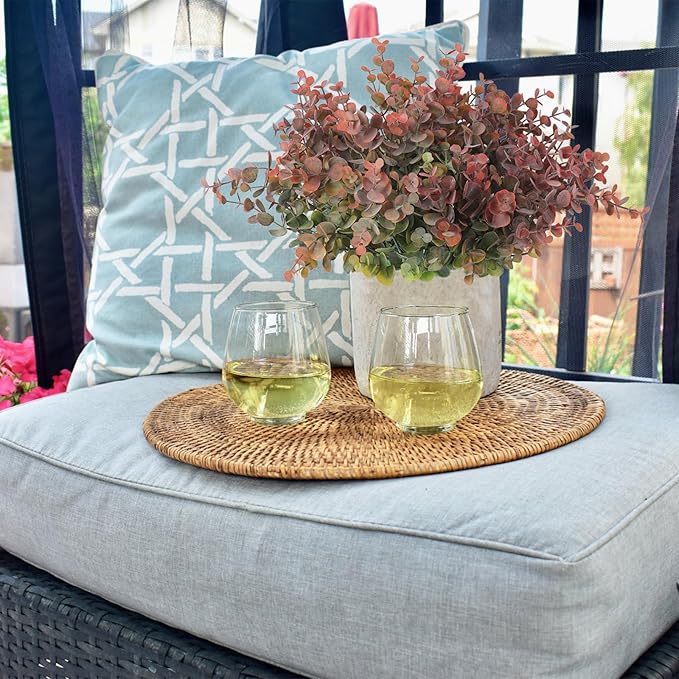 RECUTMS 20 Bundles Artificial Plants Outdoor Faux Plant Eucalyptus Stems Artificial Bushes Boxwood Bushes for Farmhouse Bathroom Office Vase Centerpiece Indoor Outdoor Decor(Dusty Red)