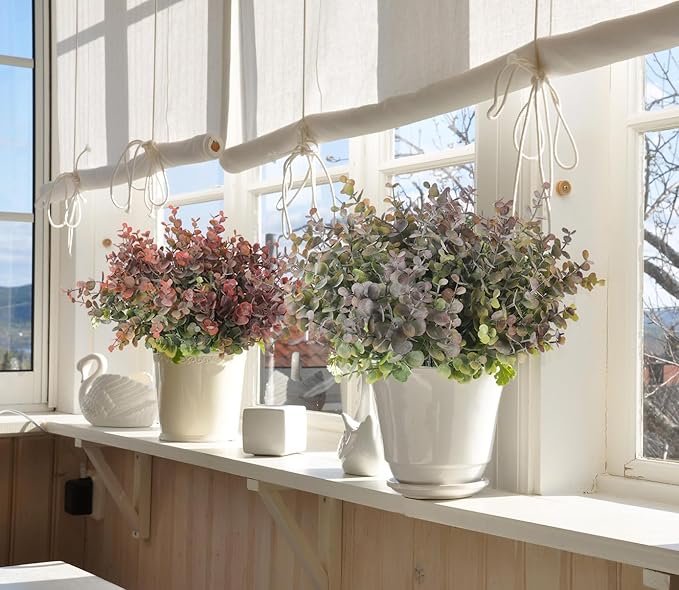 RECUTMS 12 Bundles Fake Bushes Artificial Plants Outdoor Faux Plant Eucalyptus Stems Fake Porch Plants for Farmhouse Bathroom Office Vase Centerpiece Indoor Outdoor Decor(Dusty Purple)