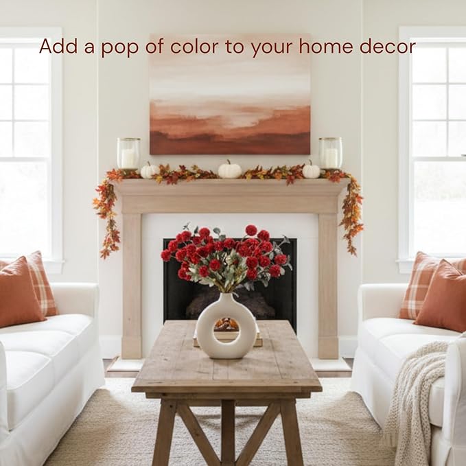 - Sophisticated Fall Flowers Bouquet - Crafted with burgundy silk flowers, our bouquets offer a luxurious touch to burgundy living room decor or as burgundy centerpieces for table settings. These artificial flowers red add elegance to any room.