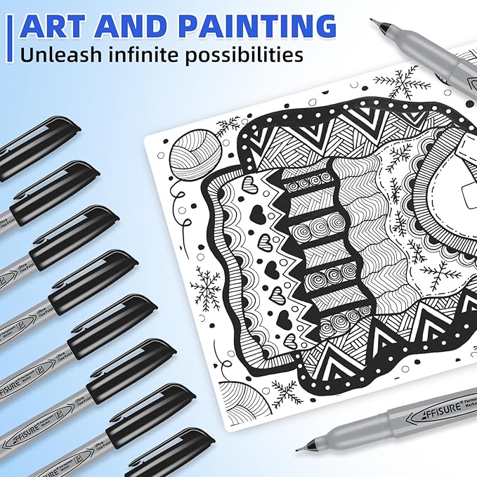 - PERMANENT MARKERS BULK: Reaches 40 permanent markers, and the black sufficient ink of each permanent markPERMANENT MARKERS BULK: Reaches 40 pack Ultra Fine Point Black Permanent Marker set, and the black sufficient ink of each permanent marker can be used for a long time with the sealing cap, perfect for detailed marks,drawing, writing, coloring, scrap booking, doodling, filling in paper, plastic, metal and most other surfaces that allows you to show off your creative side.