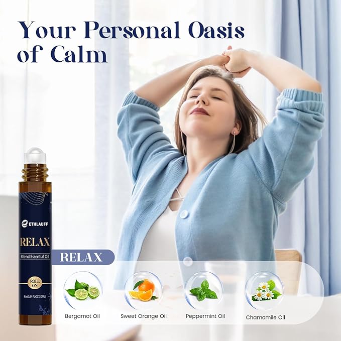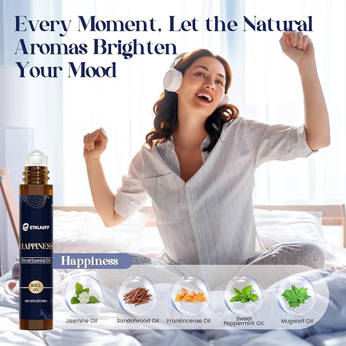 - Skin-friendly Essential Oil Blend Set:The "Sleep" blend is specially formulated with natural essential oils to help calm your mind and body, making it easier to fall asleep and enjoy a deeper. Experience true tranquility with our "Relax" formula, designed to ease tension and soothe stress away.The "Happiness" roll-on, which combines uplifting scents to brighten your mood and bring about feelings of joy.
