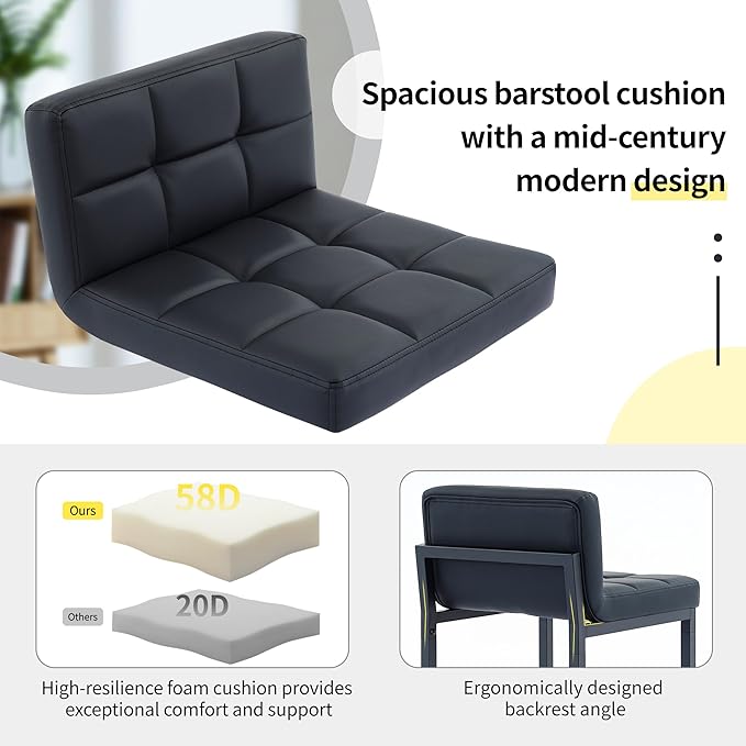 - COMFORTABLE PADDED CUSHIONS: The seat cushion is filled with high-density foam, specially designed for island stools, ensuring comfort while preventing collapse to the greatest extent. The low-back design provides waist support while maintaining a sleek, stylish look, allowing you to sit comfortably for extended periods