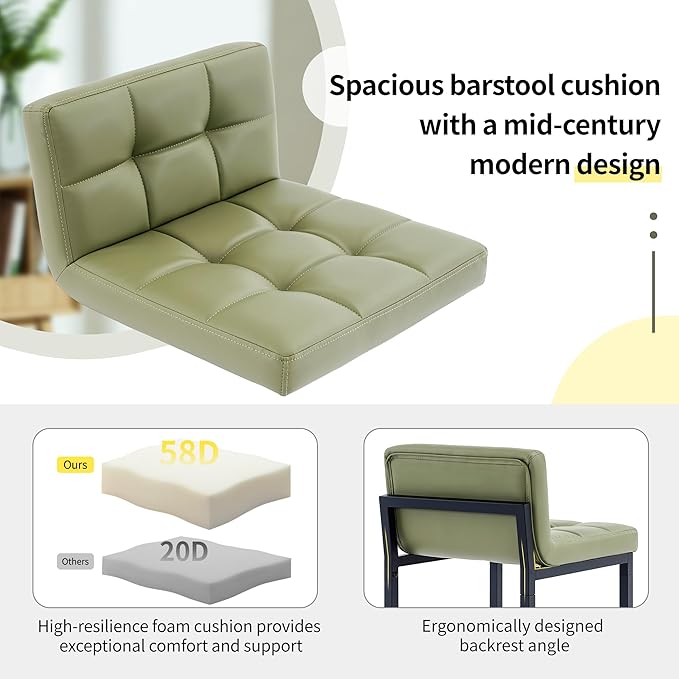 - COMFORTABLE PADDED CUSHIONS: The seat cushion is filled with high-density foam, specially designed for island stools, ensuring comfort while preventing collapse to the greatest extent. The low-back design provides waist support while maintaining a sleek, stylish look, allowing you to sit comfortably for extended periods