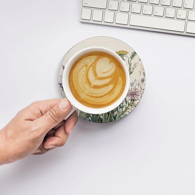 - Absorbent Design: Wild flowers absorbent coasters for drink are extremely absorbent, green leaves ceramic coasters for coffee table are effective in keeping your table dry, it can absorb spilled coffee and cola stains in 10-15 seconds