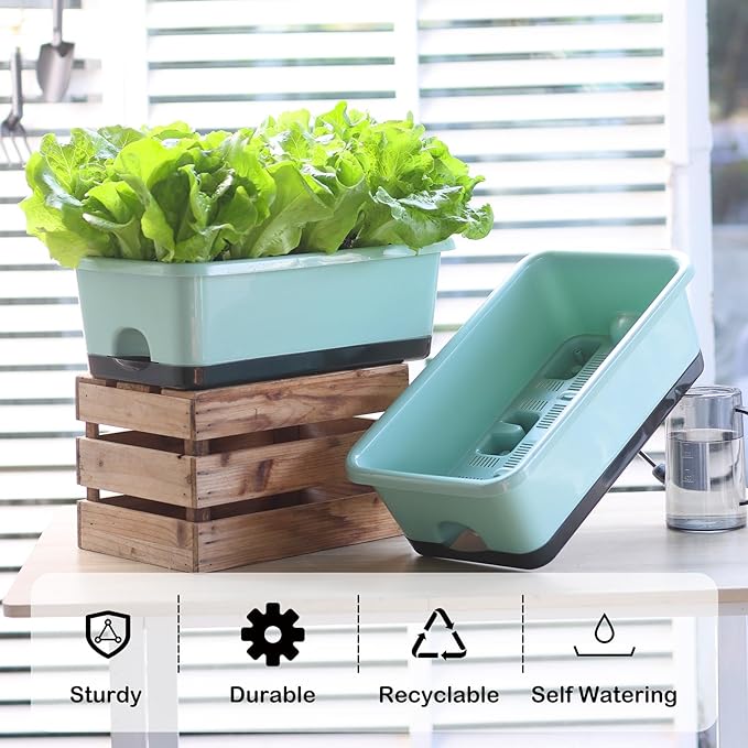 - 【Self Watering Plant Pots】Our Plant Pots are set of 6 pieces, and the size of the pot is about L17 x W7 x H6 inches, it is large enough to support any projects and ideas. Please note that plants in the images are not included! Perfect for growing all kinds of plants, like herbs, flowers, foliage, grass, cactus, succulents, ferns, arborvitae and more.