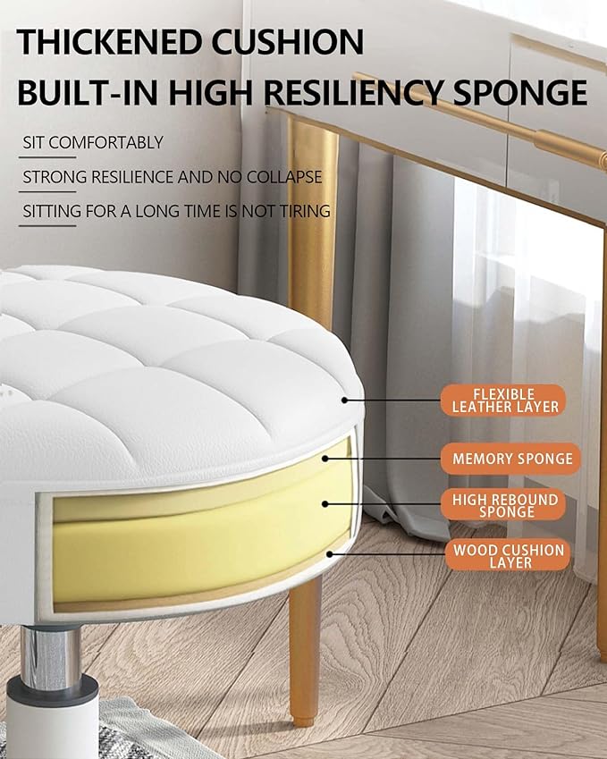 - Easy to assemble vanity stool:Assembly completed in 5 minutes.Dot Stool with Wheels,is Ideal for Bar stool, Pubs, Office stool,Coffee shop stool and home. 360 Degree Swivel: Slides effortlessly on adjustable gas-lift, 360 degree rotation rolling caster wheels for optimal angle without moving the stool, smooth-rolling for safety purpose.