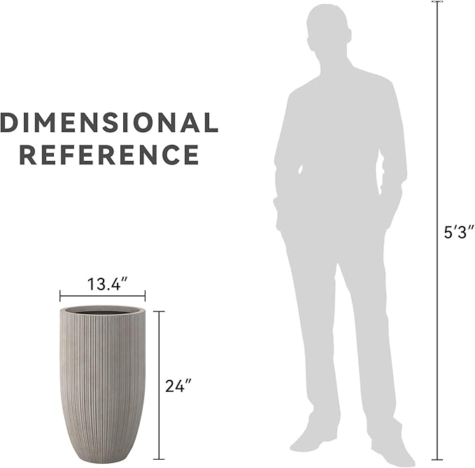 - Generous Growing Space – Thoughtfully crafted to offer plenty of room for healthy and vibrant plant growth, this planter is well-suited for a wide range of plants, from tall trees to resilient succulents and colorful flowers. Its spacious design promotes healthy root development, enhancing the overall growth potential of your plants. The robust construction ensures durability and reliability, making it a source of lasting, stable support for your gardening endeavors.