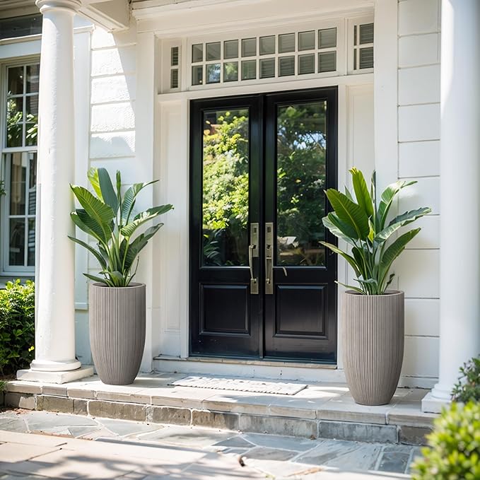 - Large & Versatile – Whether displaying a vibrant plant indoors or elegantly placed on your front steps, porch, or patio, this spacious planter effortlessly adapts to any setting. Its distinctive style complements a wide range of décor, from modern and minimalist to traditional, adding a touch of sophistication and charm to your space.