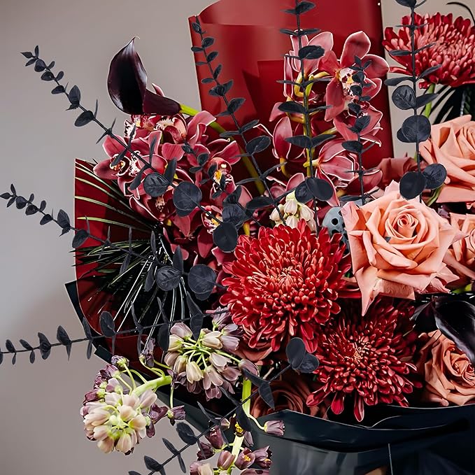 summer flower 26Pcs Black Artificial Eucalyptus Stems Faux Halloween Flowers Eucalyptuses Home Decor (26, Black)