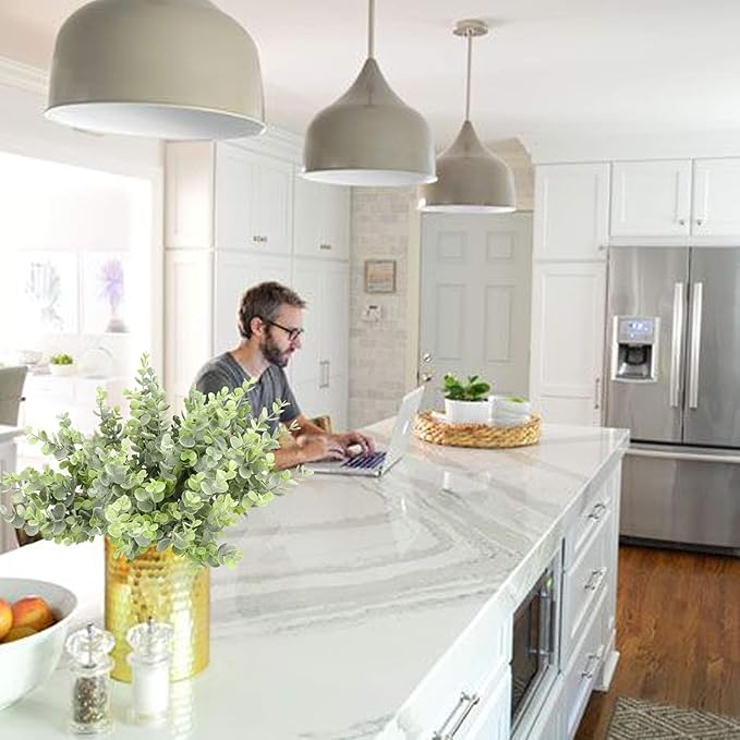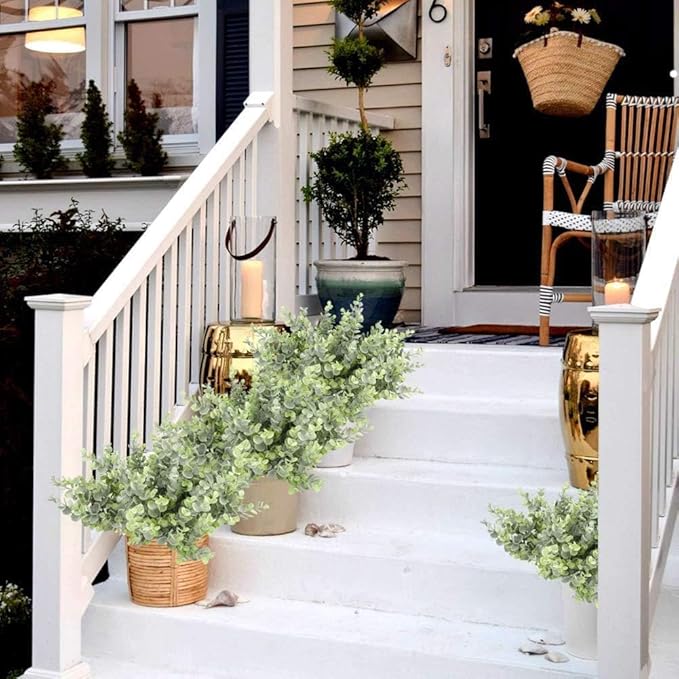 summer flower 8pcs Artificial Eucalyptus,Light Green Grey Outdoor UV Resistant Aritificial Bouguet for Decoration