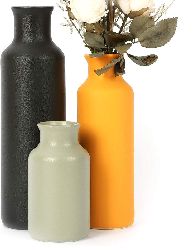 - 4.Decorative Fun: The ceramic vases set of 3 can be used for flower arrangement. You can DIY a bouquet with your family, insert it into the farmhouse decor flower vase, and enjoy a happy time with your family. With simple decoration, the boho decor vases can add brilliance to your home or garden.
