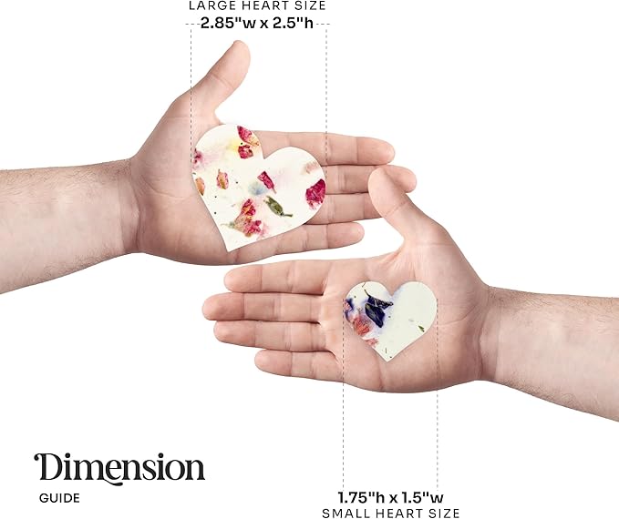 - 50 Large Pink Heart Seed Papers – Plant, Gift & Bloom: Includes 50 handmade seed papers (2.85" x 2.5") crafted with a custom wildflower blend and real petals. Used to plant vibrant blooms in pots, gardens, or outdoor spaces — perfect for eco-conscious brides, event planners, gardeners, and anyone who loves sustainable living.