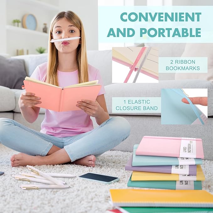 - Convenient size: the A5 notebook measures 5.7 x 8.3 inches, with each college ruled hardcover notebook containing 64 sheets/128 pages and 8 mm line spacing, making the lined journal notebook suitable for fitting in pockets and bags