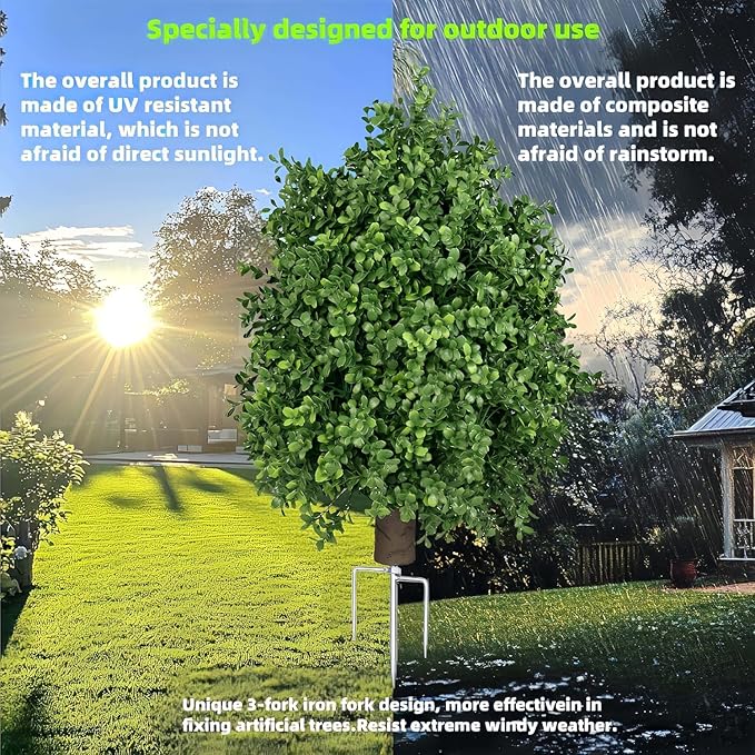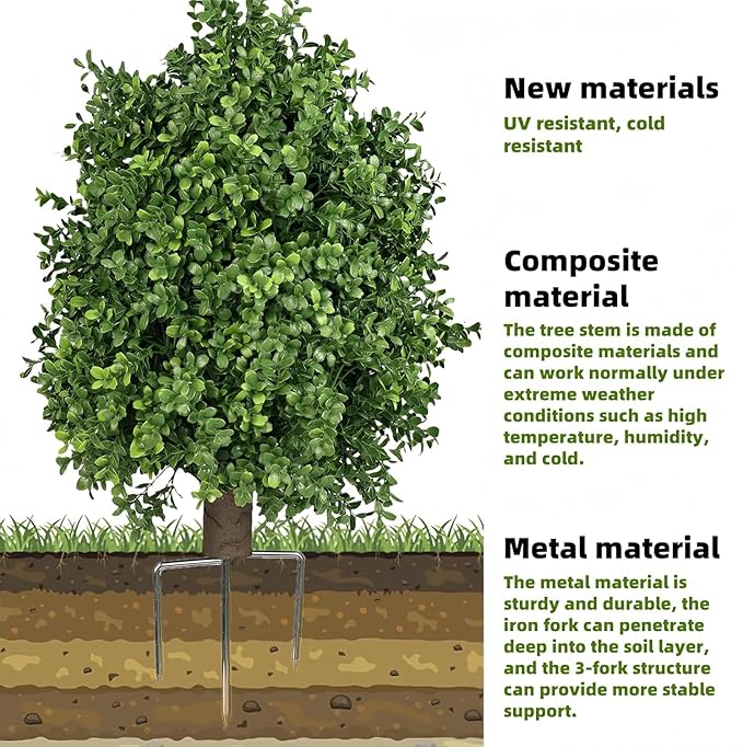 - 【Product Dimensions】With a diameter of 14 inches and a 6-inch long ground stake, this faux plant is flexible and can be used as a small tree or a spherical bush. Its sturdy design makes it ideal for outdoor trees for porch or decorative fake outdoor plants.