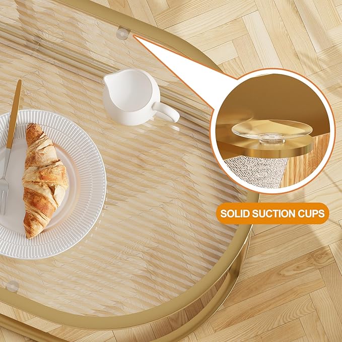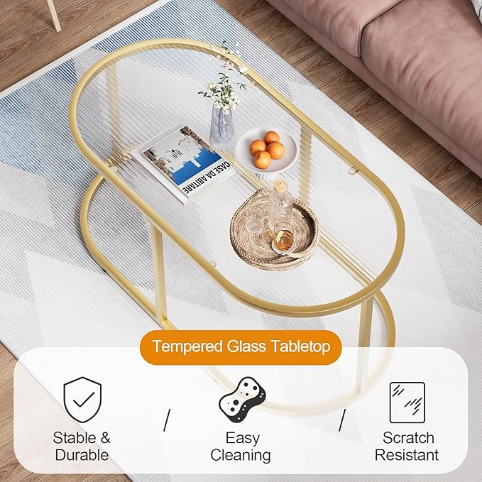 Coffee Table Gold Glass Coffee Table for Living Room, Oval Table Center Table with Ribbed Glass Top and Sturdy Metal Frame,Modern Glass Accent Tables for Bedroom Home Office
