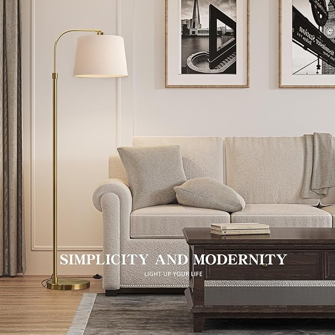 - Classic Modern Gold Floor Lamp: This elegant reading light boasts a refined gold pole and a white linen lampshade, offering a sophisticated yet understated aesthetic that harmonizes seamlessly with a variety of interior design styles, including modern, traditional, and farmhouse. It is an exemplary choice for home decor