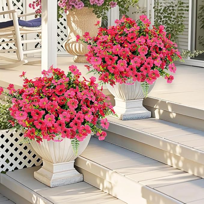 - UV Weather Resistant: The artificial outdoor plants Flowers are made from high-quality silk and plastic, UV-resistant, fade-resistant, and suitable for any weather conditions with low-maintenance costs. Perfect for outdoor decoration,these plants require no sunlight, watering, or pruning, adding everlasting fresh and beautiful flowers to your life.