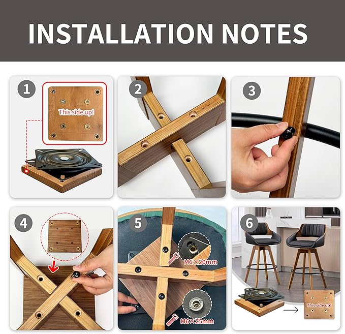 - STABLE AND DURABLE CONSTRUCTION: The counter height stools feature a stable, sturdy solid wood frame and metal foot ring to ensure durability and stability, preventing any rocking or shifting due to swivel or height. The legs have adjustable non-slip feet to control the balance of the dining chair and prevent scratching the floor. It providing a safe and reliable seating option for everyday use.