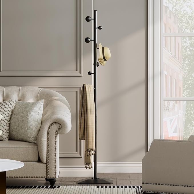 - EASY TO INSTALL: The standing coat rack comes with easy-to-understand instructions and tools, and it can be easily installed in just 5-10 minutes. Then you will get a small furniture that is both economical, beautiful and practical. Not only a practical tool for hanging clothes, briefcases and coats, but also a beautiful decoration for your room and office.