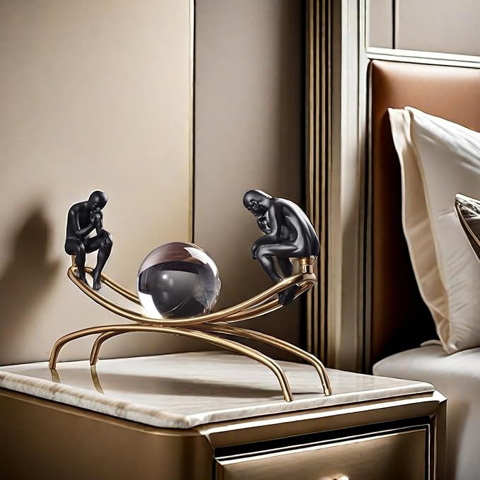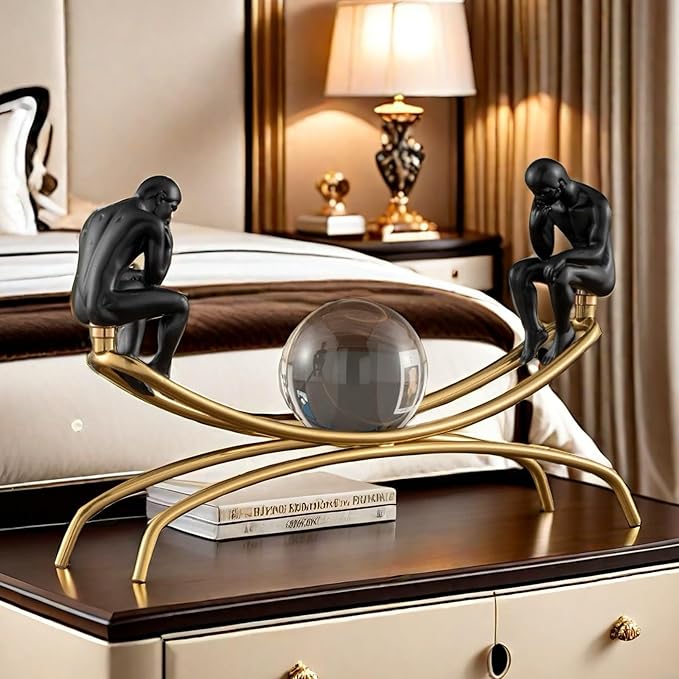 The Thinker Thinking Man Statue with Crystal Ball Sculpture Figurine, Home Office Living Room Desktop Display Decoration